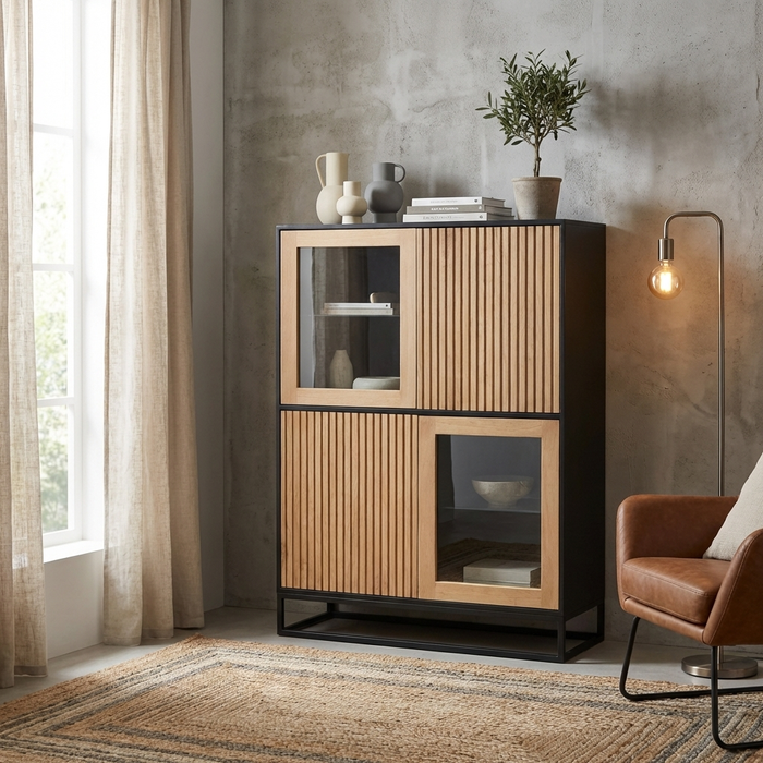 NAMIBIA Highboard mit 2 Glas- / 2 Holztüren